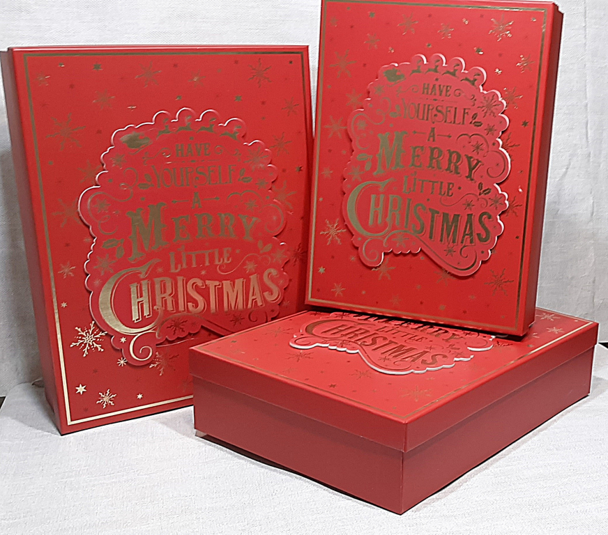 Подарочная коробка 5386( комплект 3 шт ) цвет красный ,39х30х11см ,37х28х10см,35х26х7 см Коробка Новый Год , красного цвета с 3D АПЛИКАЦИЕЙ.